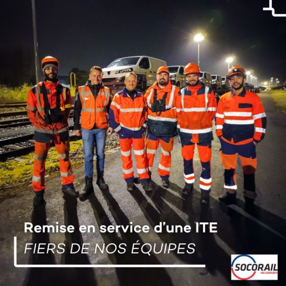 La forte mobilisation et les compétences de nos équipes, ainsi que la proximité géographique d’Europorte via sa filiale Socorail avec le site client, ont été déterminantes dans la réussite de cette mission.Sur la photo une partie de l’équipe lors de la 1ère expédition d’un train chargé de l’ITE.